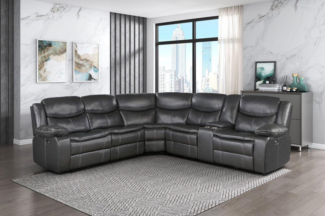 Name: Modern 3-Piece Power Reclining Sectional with Right Side Console Dark Gray Faux Leather Usb...