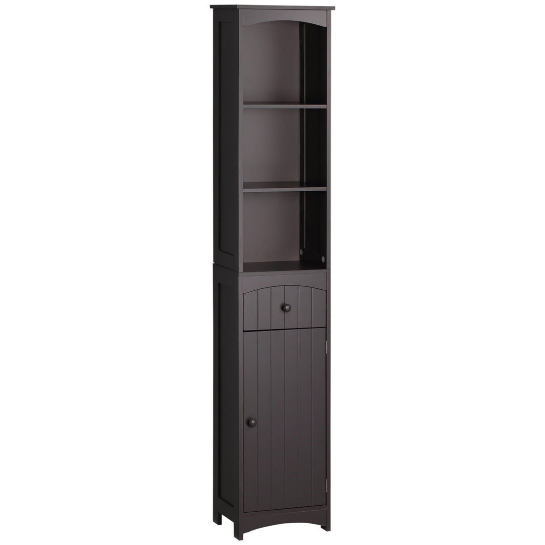 Homcom Bathroom Storage Cabinet, Free Standing Bathroom Storage Unit, Tall Linen Tower With 3 Tier Shelves And Drawer, Brown Brown Mdf