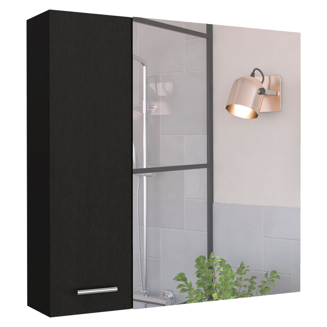 Kenya Medicine Cabinet, Mirror, Double Door, Four Interior Shelves Black Mdf Engineered Wood