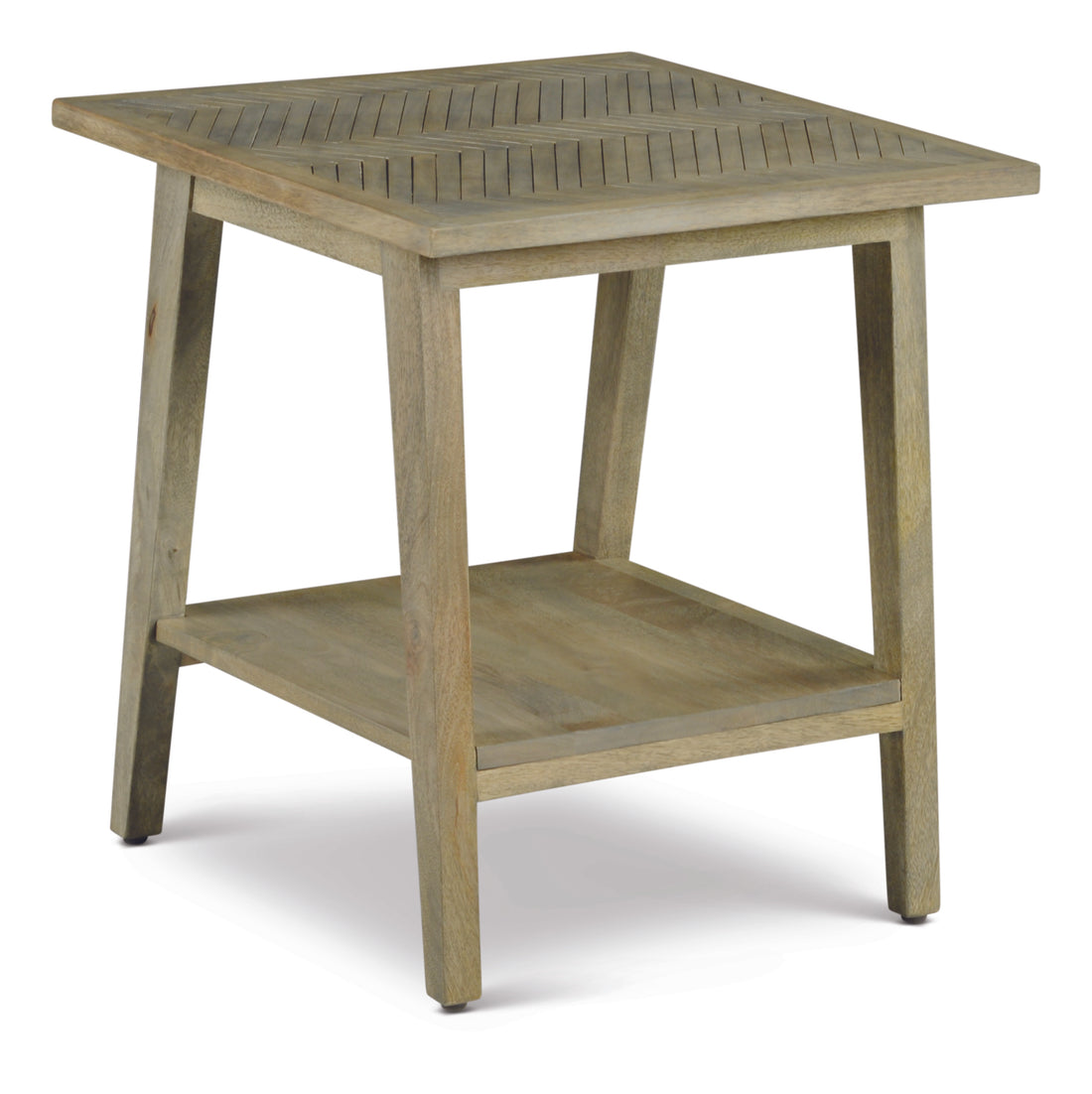 Name: Milani - Square End Table - Light Brown Characteristics: Solid wood herringbone pattern inlaid...