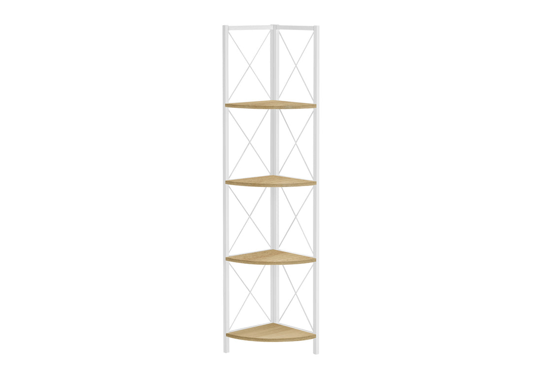 Name: Bookshelf, Bookcase, Etagere, Corner, 4 Tier, 60"h, Office, Bedroom, Natural Laminate, White Metal, Contemporary,...
