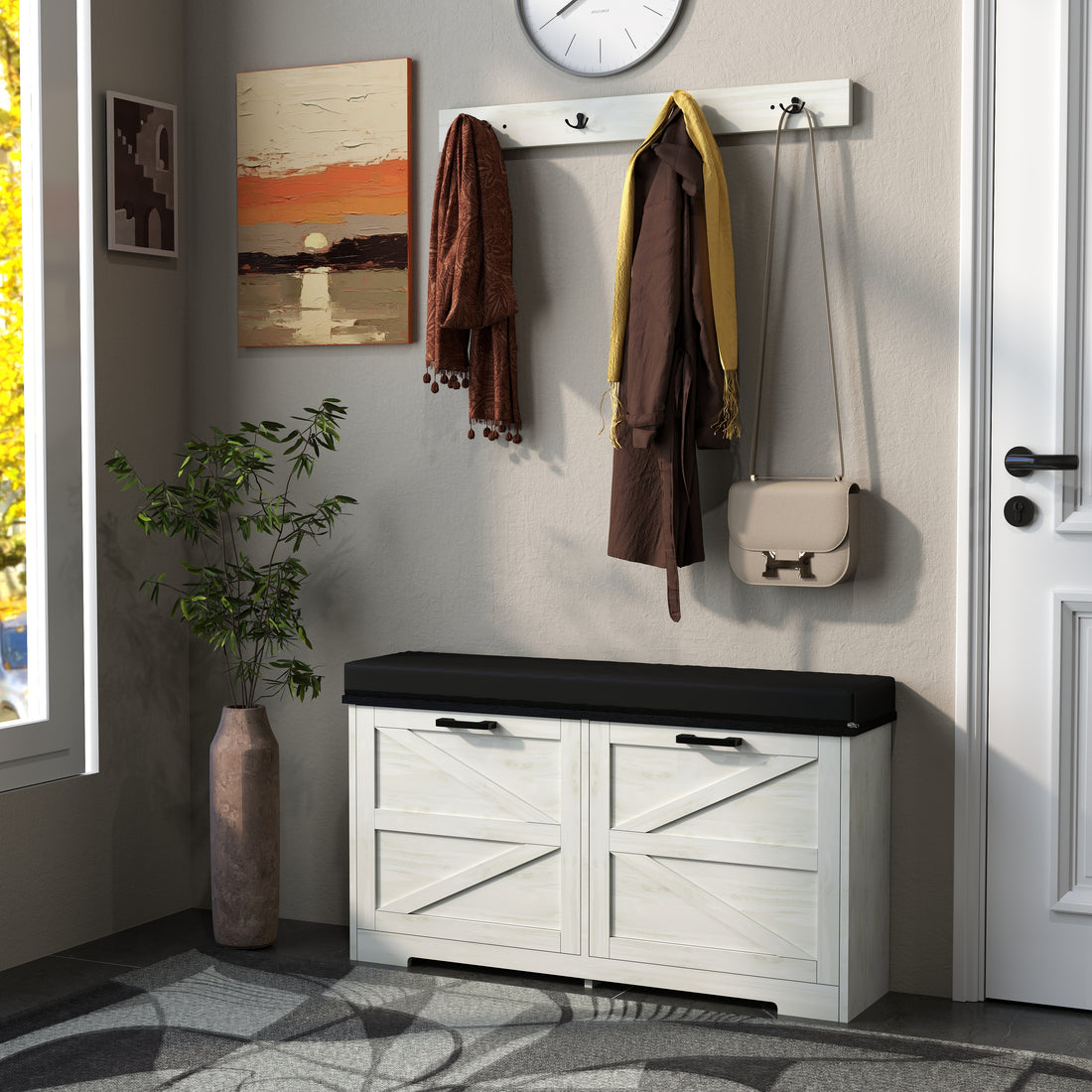 Name: Farmhouse Shoe Storage Bench with Coat Rack, Antique White Shoe Bench with 2 Adjustable...