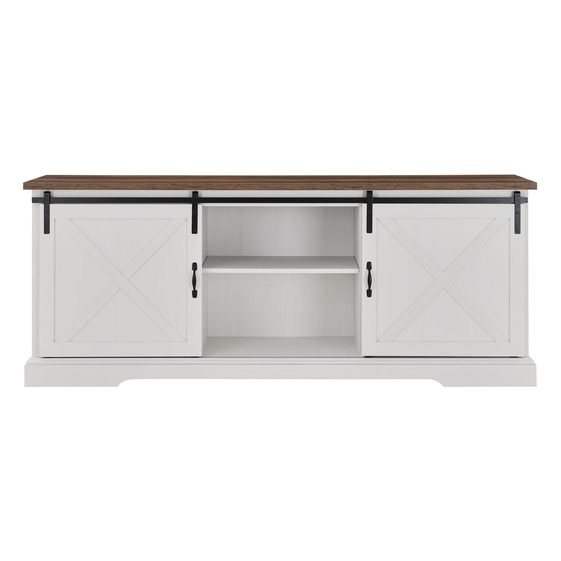 Rustic Farmhouse Double Barn Door 70" Tv Stand For 80" Tvs With Center Shelves White Oak Brown Mdf