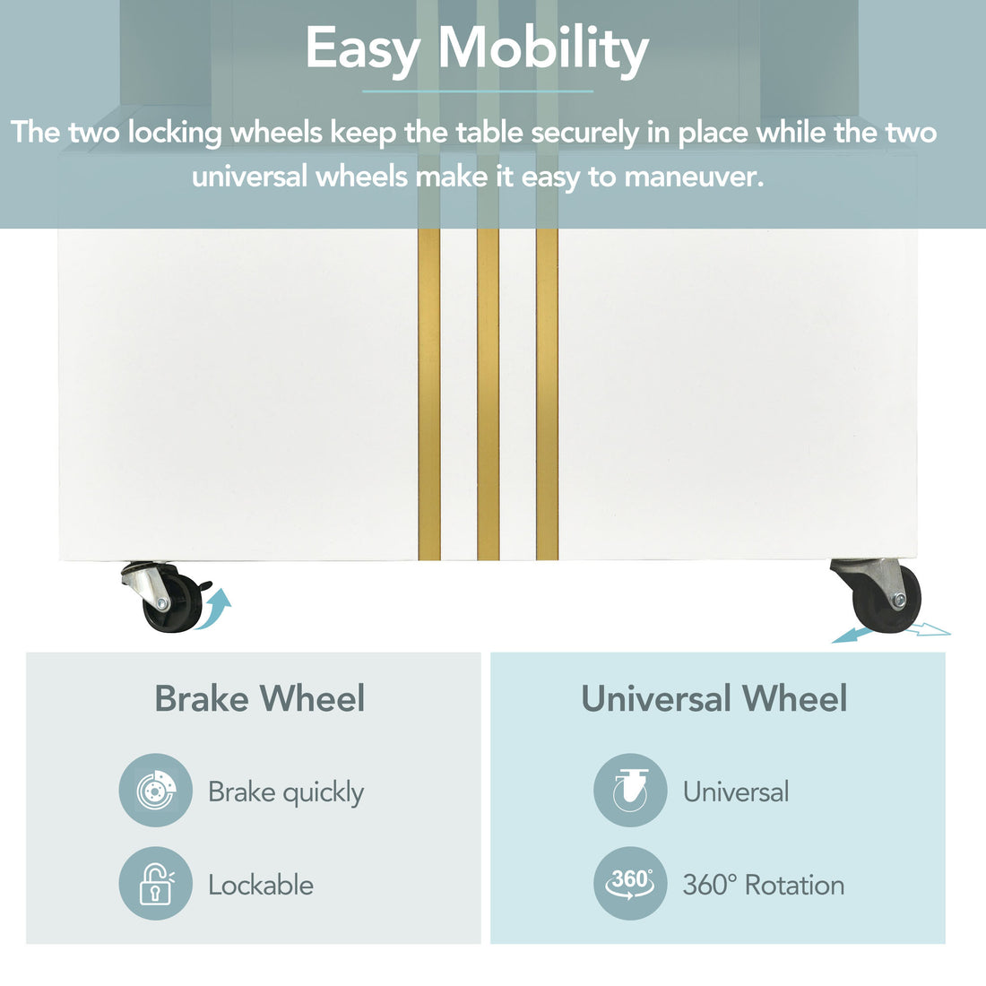 Modern Luxury Tv Stand And Coffee Table Set Of 2, High Gloss Faux Marble Top, Tv Stand For Tvs Up To 78'', Rectangle Coffee Table With Caster Wheels For Living Room, White White Gold 70 79 Inches Mdf