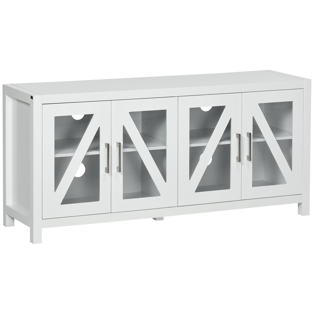 Homcom Tv Cabinet Stand For Tvs Up To 58", Entertainment Center With Adjustable Shelves, 4 Glass Doors And 4 Cable Holes For Living Room, White White 50 59 Inches Mdf