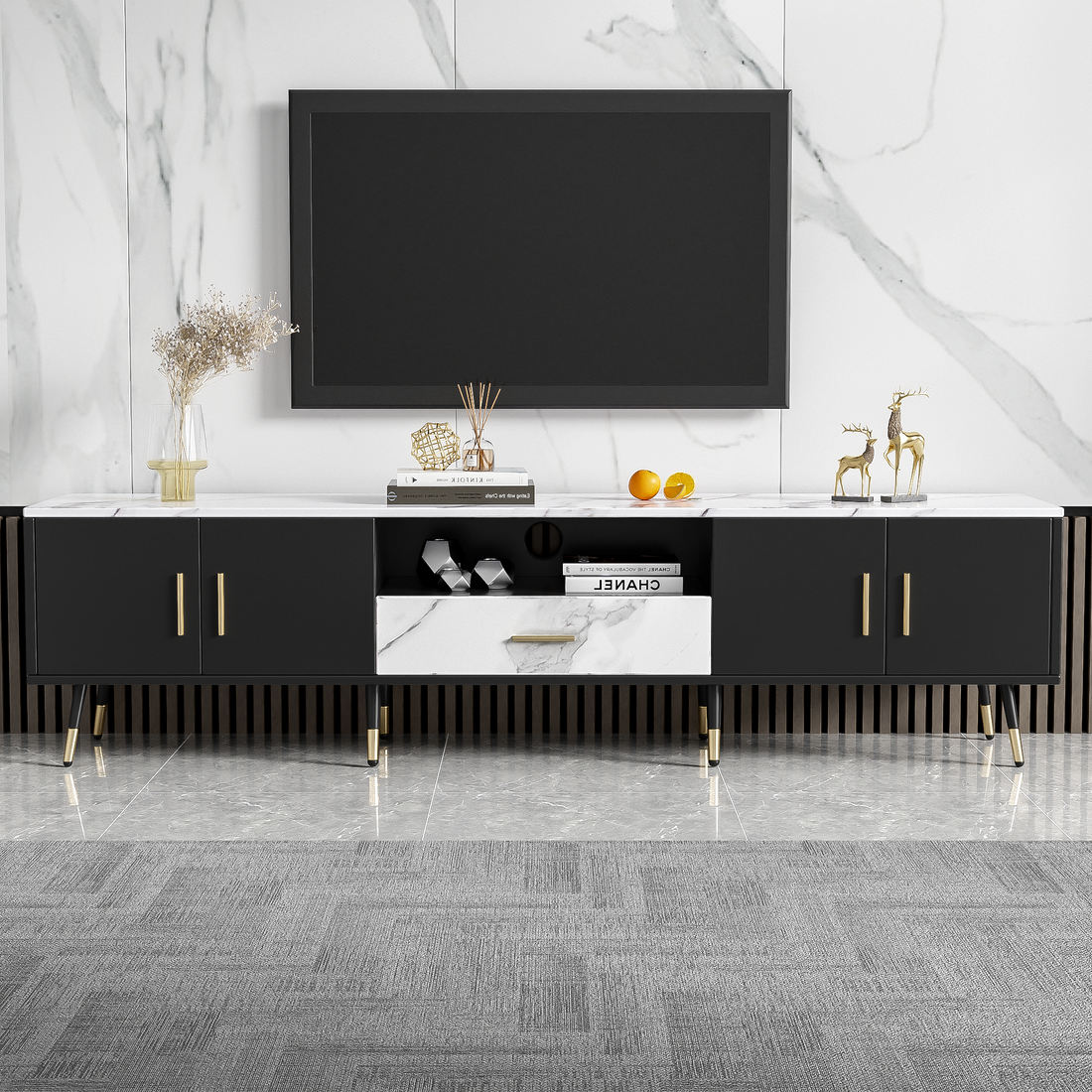 71'' Modern Tv Stand With 2 Cabinets& Open Compartments, Entertainment Center For Tvs Up To 80'', Television Console For Living Room, Bedroom, Home Theatre White Black Primary Living Space 70 79