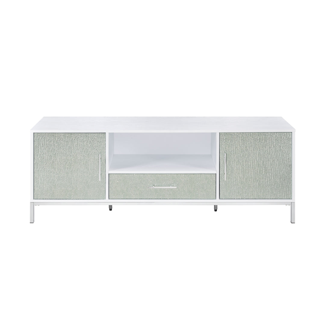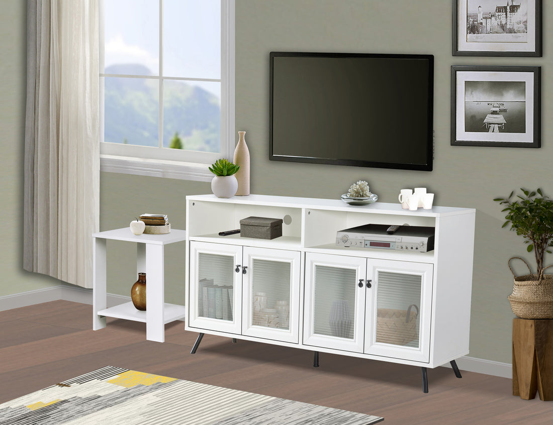 Name: Tv Stand "Chic White Media Console - Contemporary Tv Stand with Adjustable Legs and...