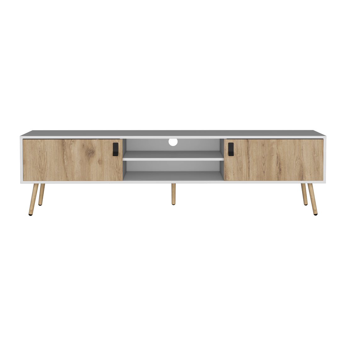 Name: Burke 70"w White and Oak 2-Door Tv Stand Characteristics: 2 Door Cabinet Adjustable Shelf...