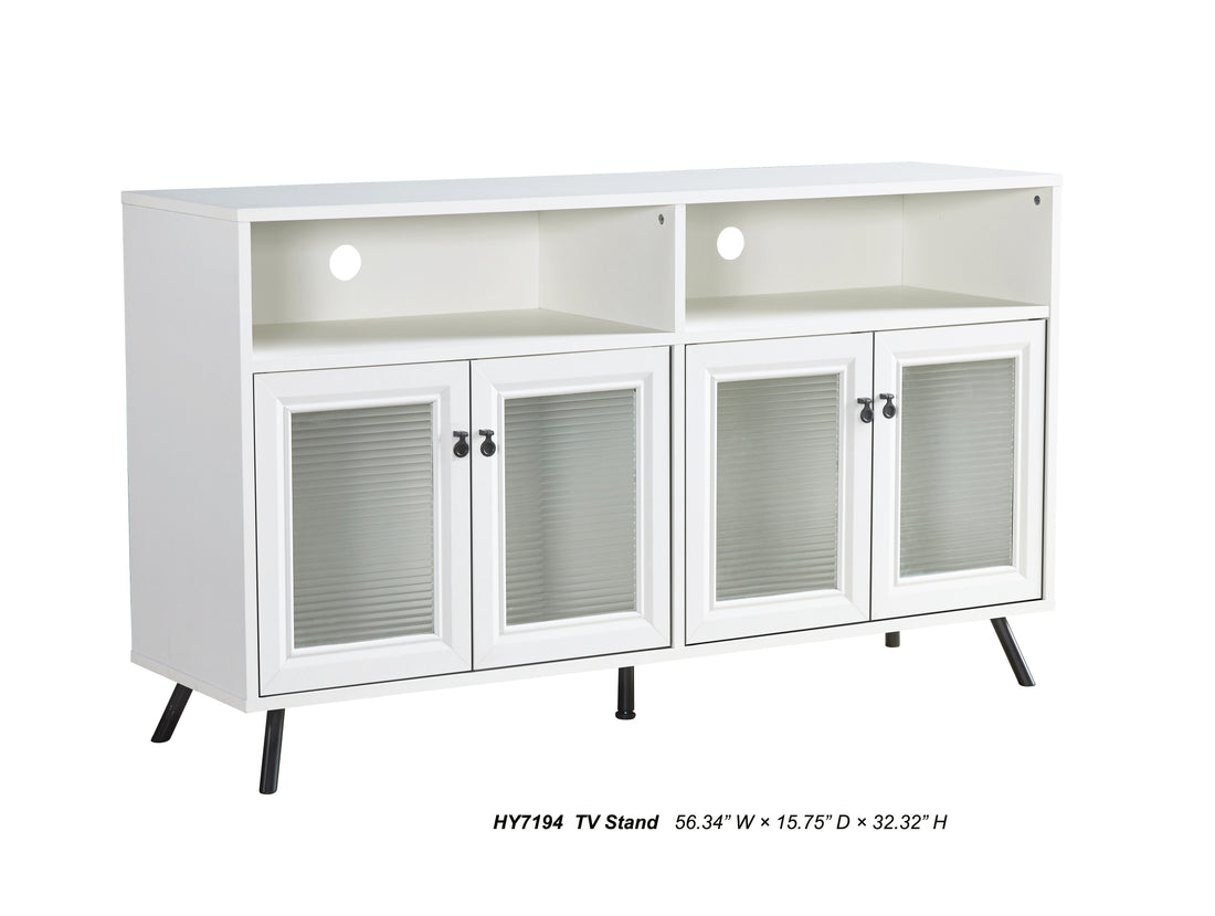 Tv Stand "Chic White Media Console Contemporary Tv Stand With Adjustable Legs And Cable Management" White 50 59 Inches Solid Wood