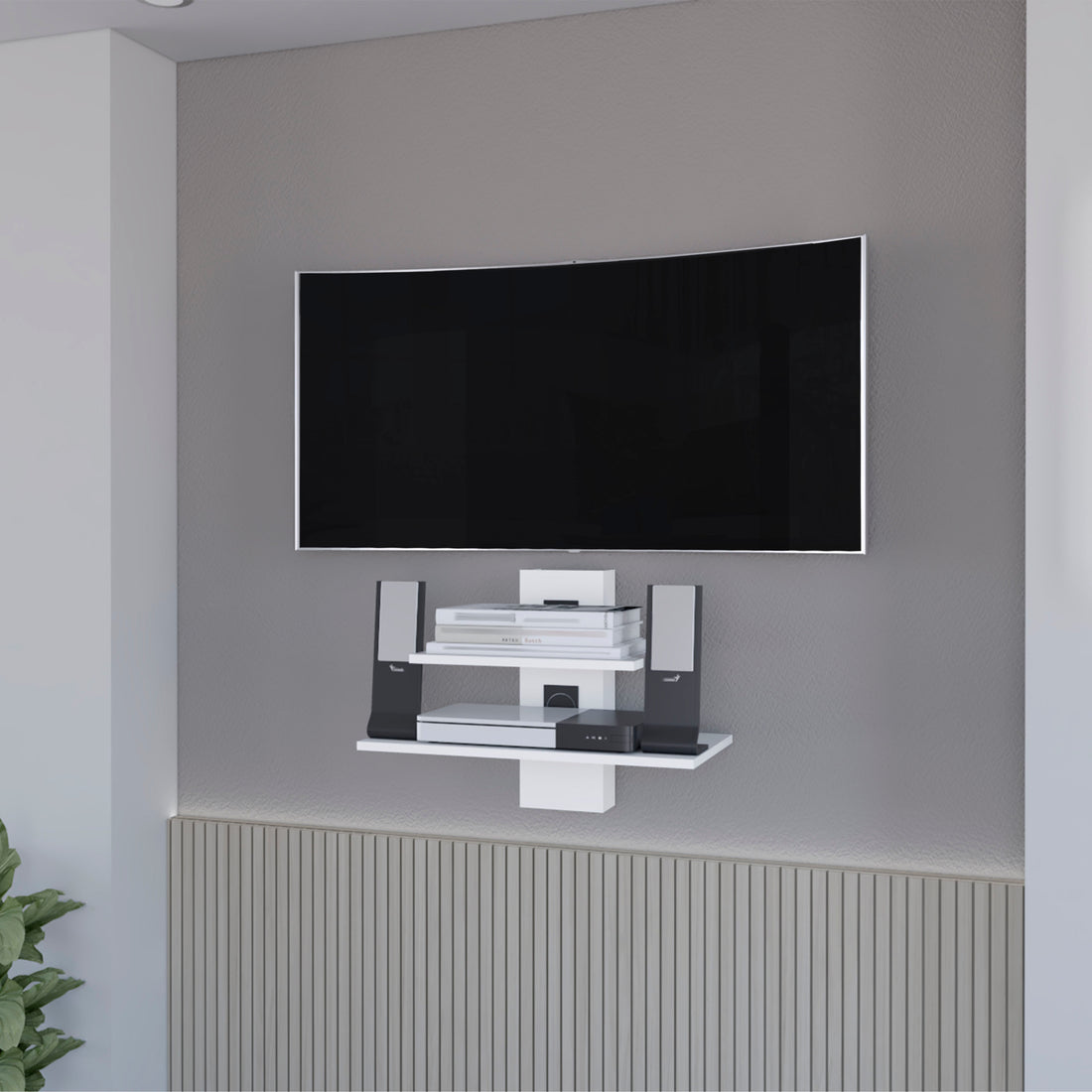 Burgos Floating Shelf, 2 Tier Shelf Wall Unit With Cable Management White Primary Living Space 50 59 Inches Modern Mdf Engineered Wood