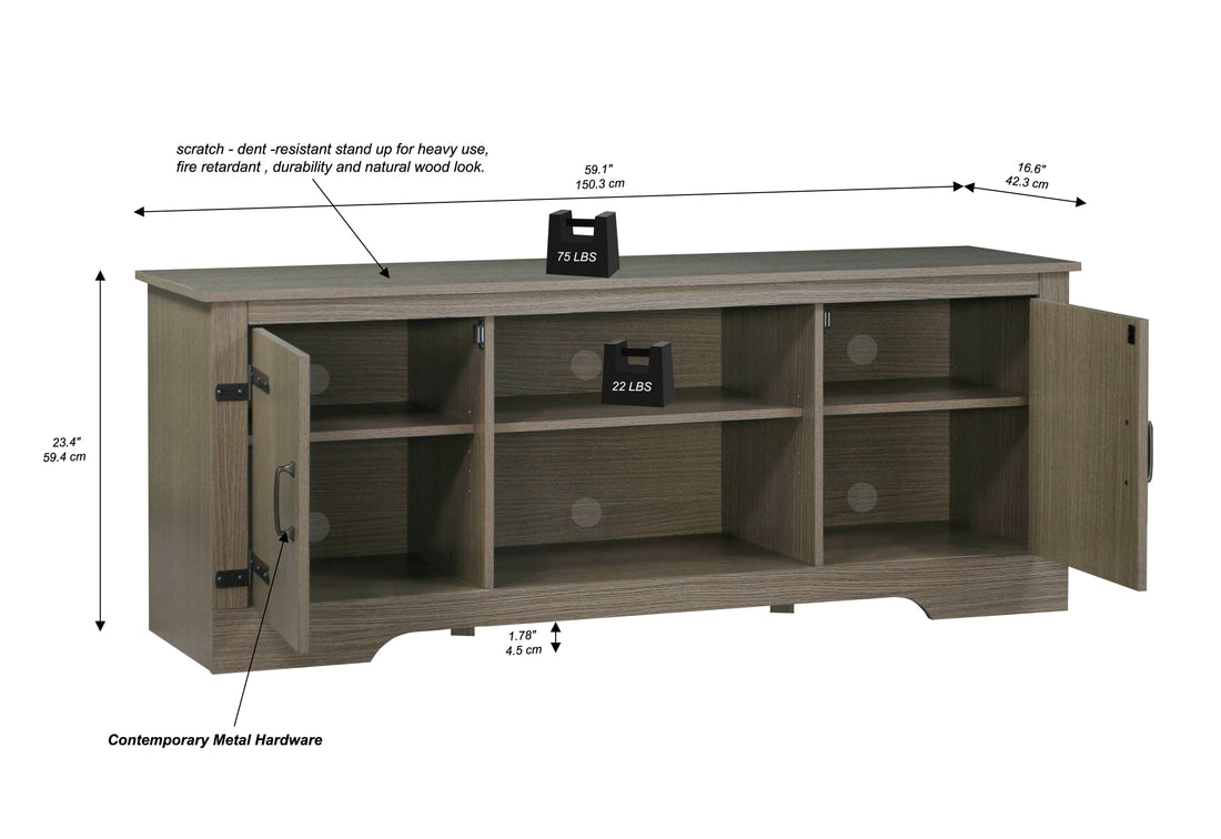 Tv Stand "Elegant Walnut Wood Grain Media Console And Tv Stand With Storage Versatile Modern Entertainment Center For Contemporary Living Room Supports Up To 75 Inch Tvs" Grey 70 79 Inches Solid Wood