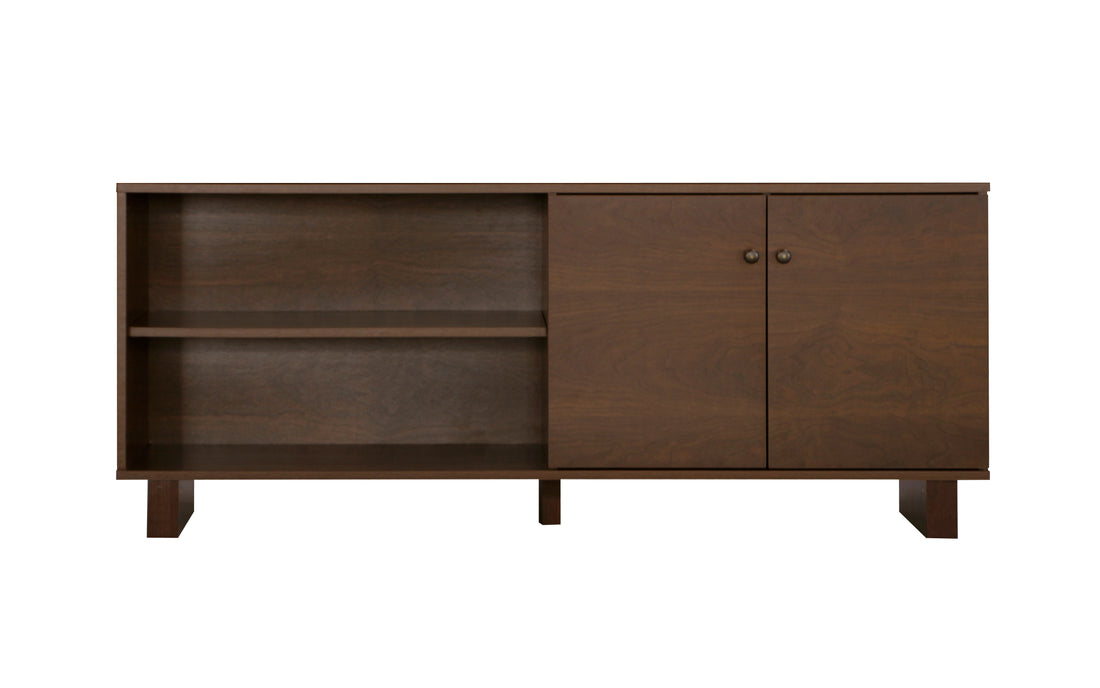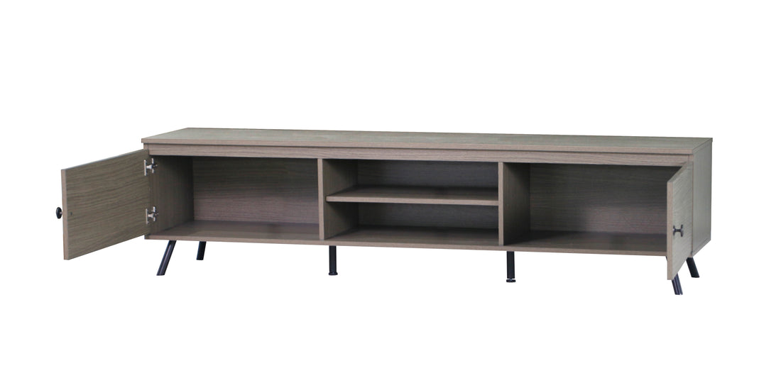 Name: Matteo - Tv Stand - Brown Characteristics: Sliding doors Melamine finish Kenlin drawer guides...