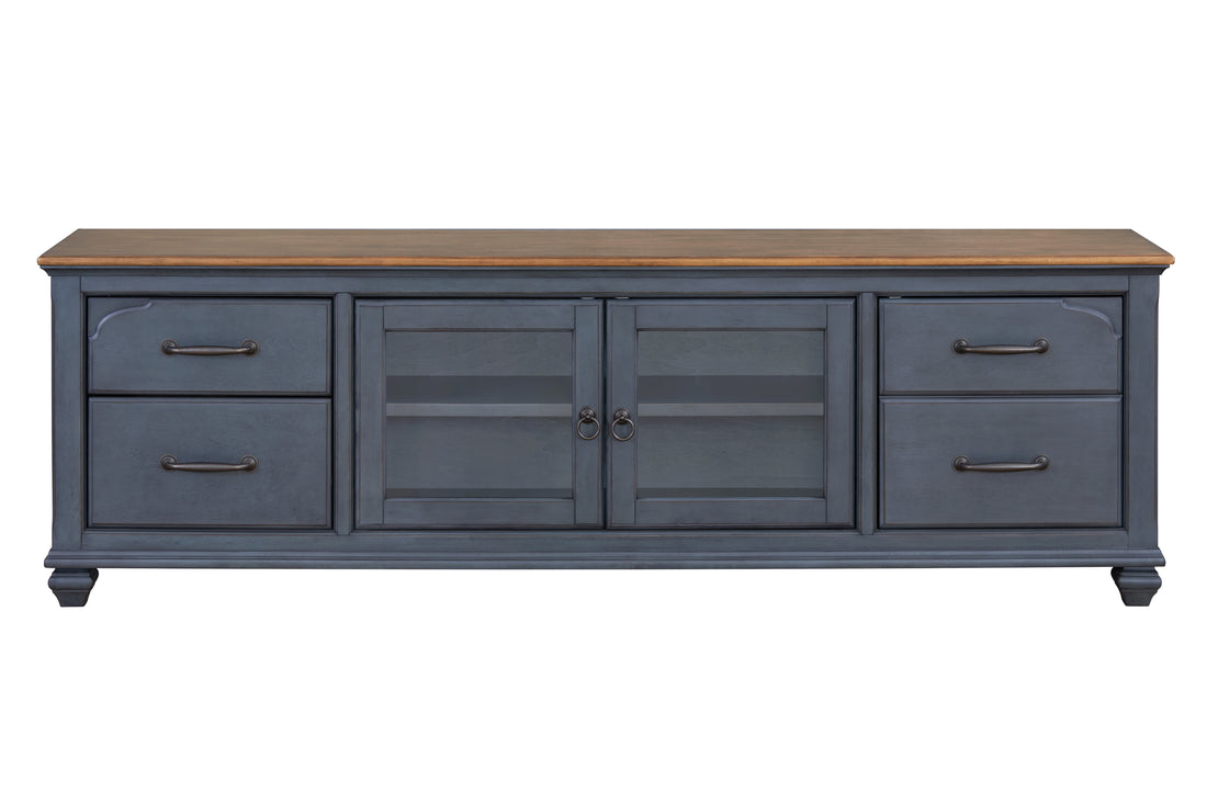 Americana 84 In Tv Stand For Tvs Up To 90 Inches, No Assembly Required, Corduroy Blue Finish Blue 90 Inches Or Larger Rubberwood Rubber Wood