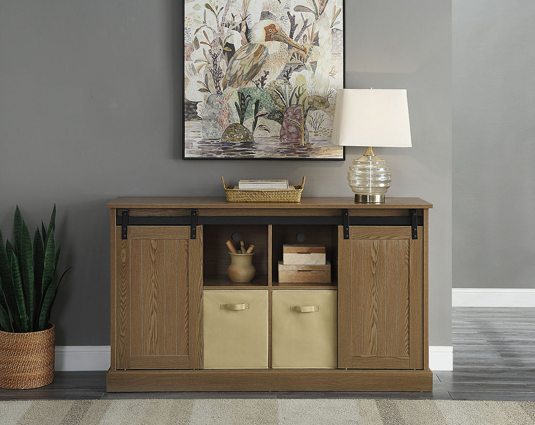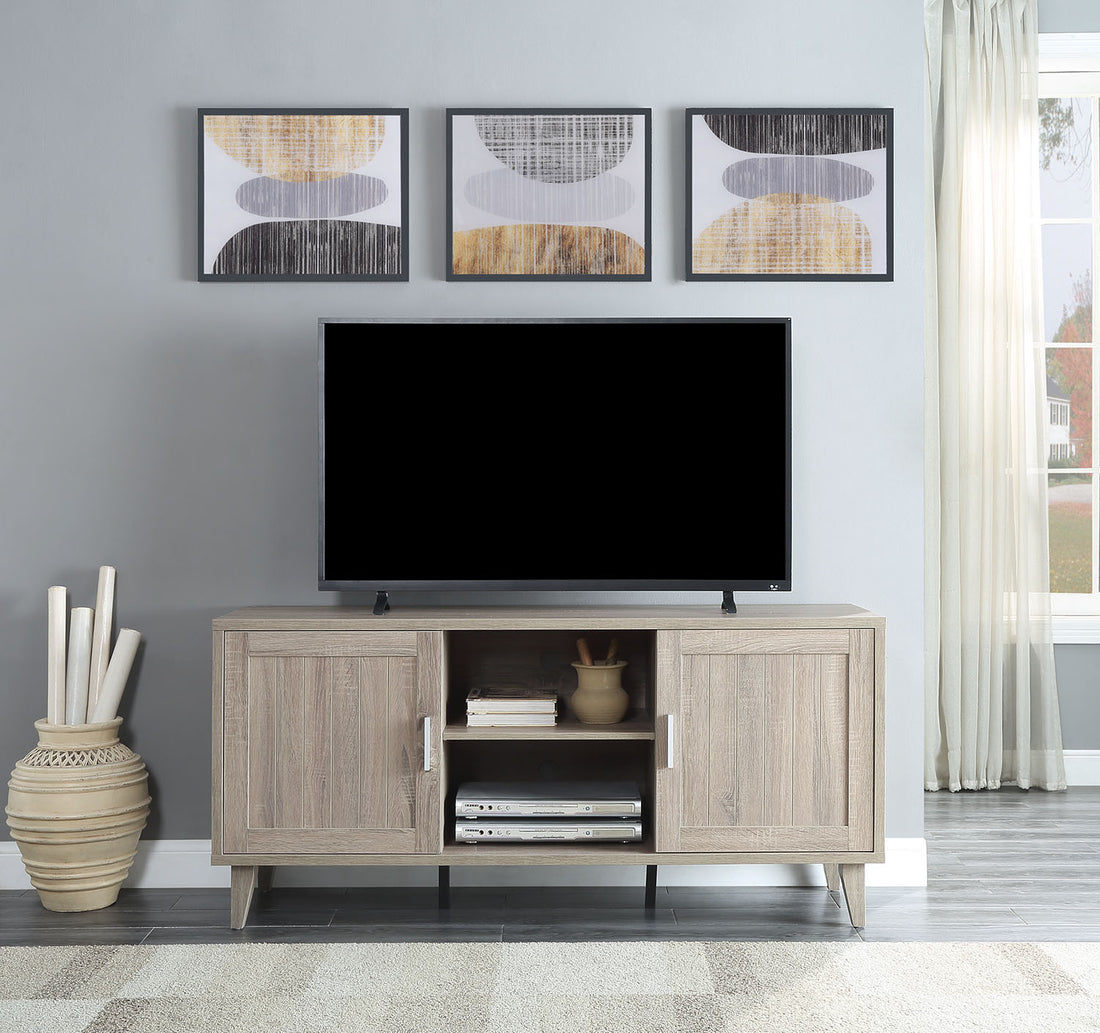 61'' Media Console Plaid Grey Oak Mdf Steel