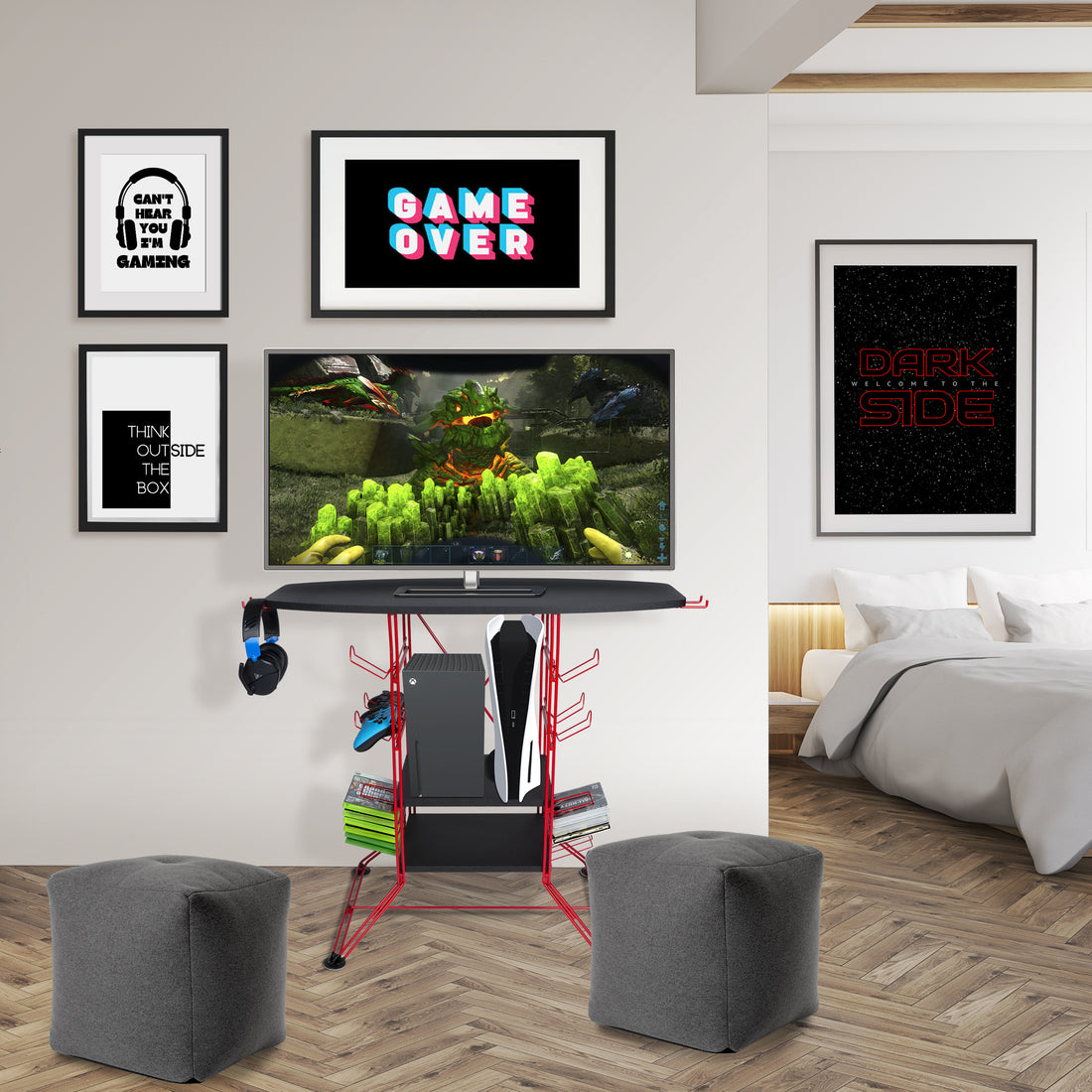 Name: Gaming Storage Stand with 2 Fixed Carbon Laminate Shelves in Black and Red Characteristics:...