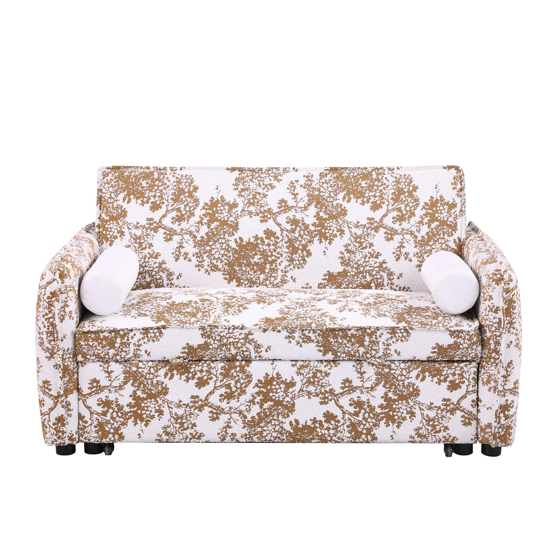 Soft Boucle Convertible Two Bedroom Sofa With Adjustable Back, 2 Seater Sofa, Pull Out Bed, 2 Waist Pillows For Small Living Rooms And Apartments Light Brown Boucle 2 Seat