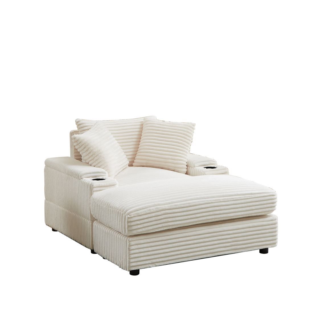 43.3 Inch Corduroy Single Sofa With A Back Pillow2 Toss Pillowsa Ottoman ,2Storage Spaces And Cup Holding Grooves Comfy Sofa Deep Seat Couch For Living Room Beige Foam Corduroy 1 Seat