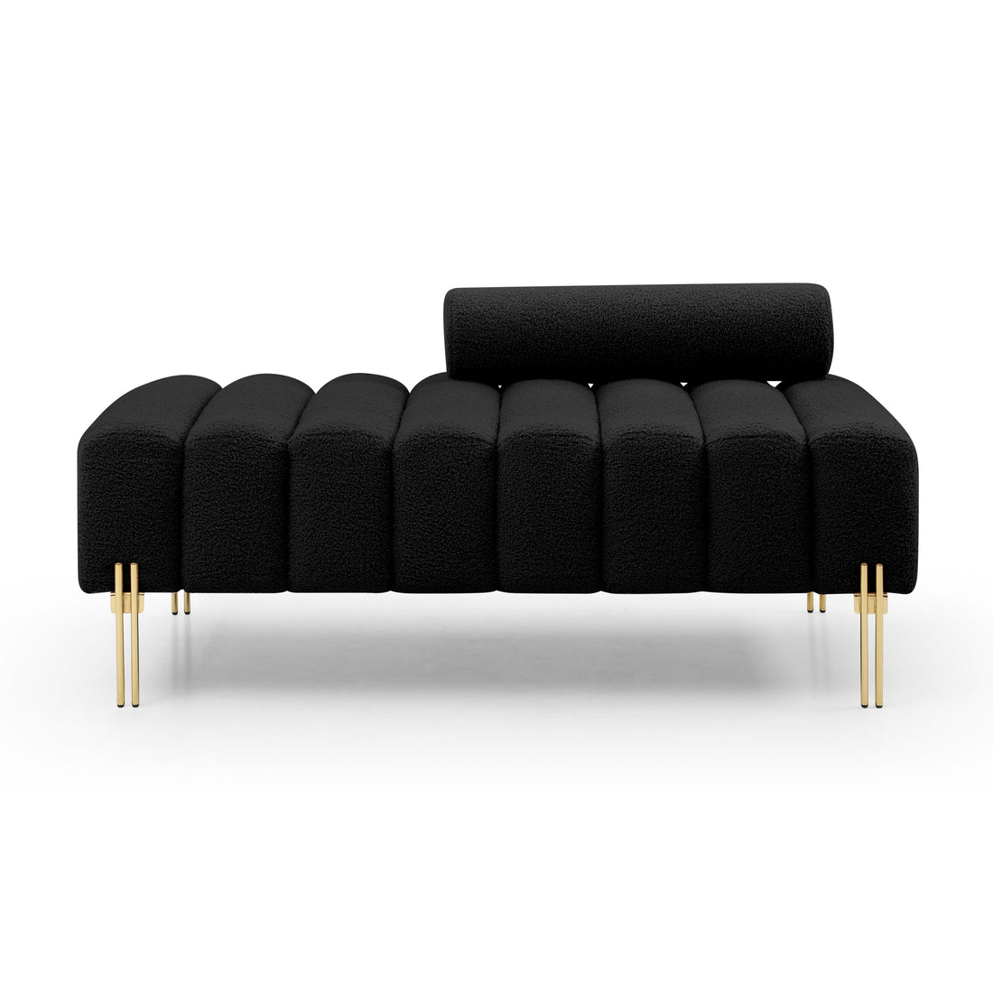 53.2" Width Modern End Of Bed Bench Sherpa Fabric Upholstered 2 Seater Sofa Couch Entryway Ottoman Bench Fuzzy Sofa Stool Footrest Window Bench With Gold Metal Legs For Bedroom Living Room,Black Black Foam Upholstered