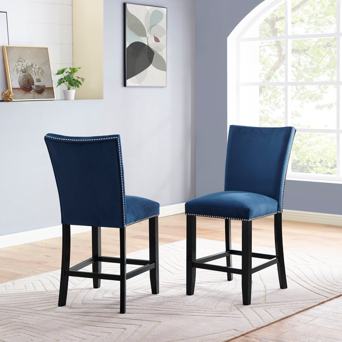 Name: Camila - Velvet Counter Chair (Set of 2) - Blue Characteristics: Solid hardwood frames...