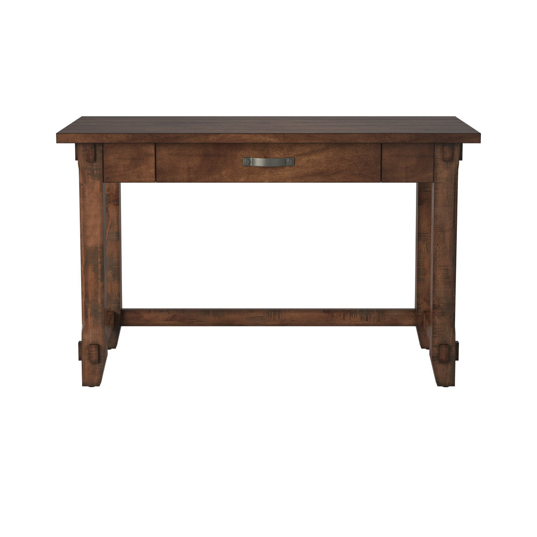 Restoration 48 Inch Writing Desk, No Assembly Required, Rustic Walnut Finish Brown Brown Keyboard Tray Writting Desk Office Lodge,Mission,Rustic Freestanding Rectangular Drawers Desk Rectangular Wood Trestle