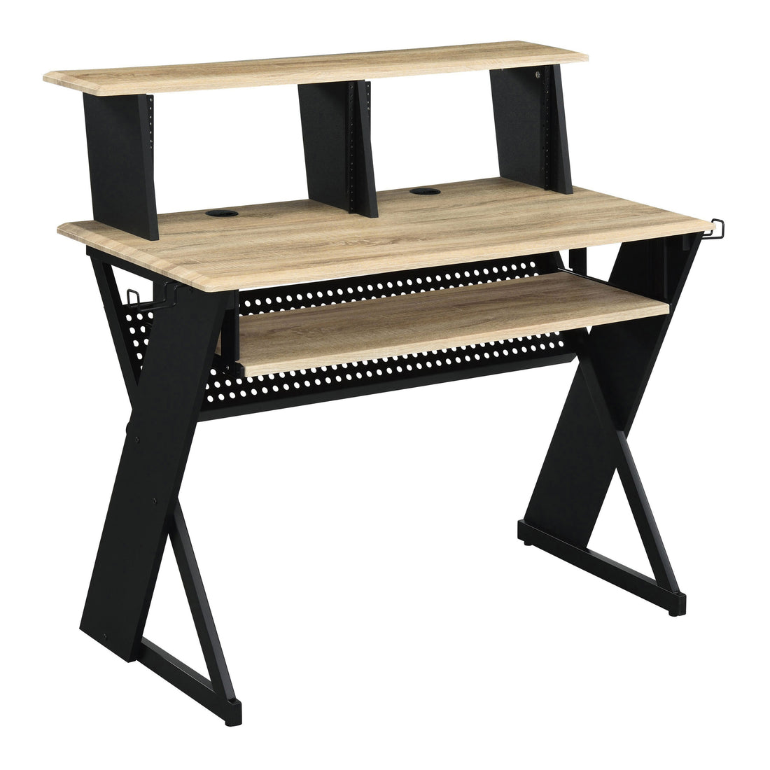 Natural And Black Music Desk With Cord Managements Natural Black Computer Desk Office Rectangular Shelves Desk Wood Metal Sled