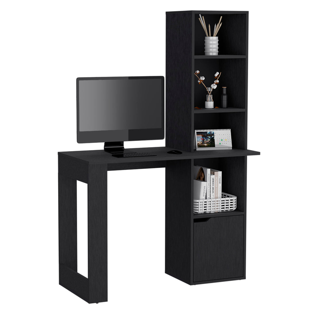 Name: Xalo Computer Hutch Desk, Lower Shelf, Four Shelves, Black Characteristics: Compact yet spacious design...