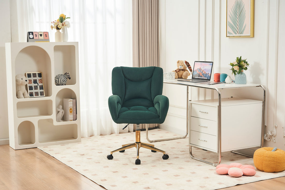 005 Velvet Fabric 360 Swivel Home Office Chair With Gold Metal Base And Universal Wheels,Green Solid Green Office Sponge Wipe Clean Modern Office Chairs Tufted Back Foam Swivel Velvet