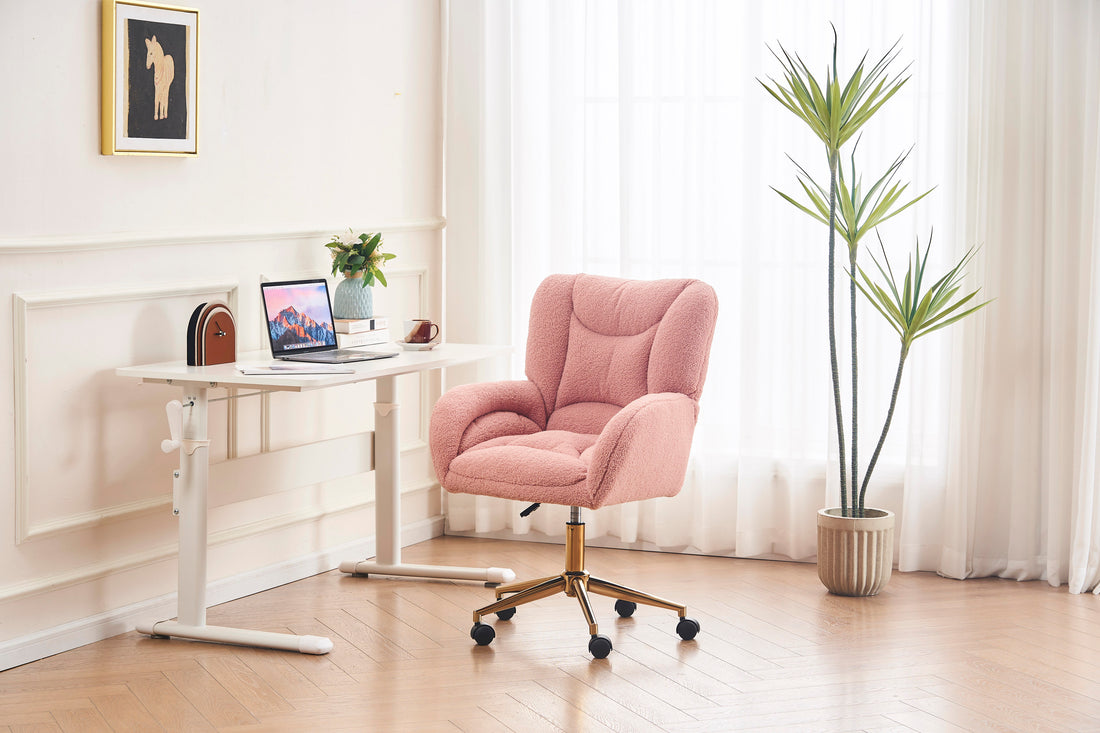 005 Teddy Fabric 360 Swivel Home Office Chair With Gold Metal Base And Universal Wheels,Pink Solid Pink Office Sponge Wipe Clean Modern Office Chairs Tufted Back Foam Swivel Teddy