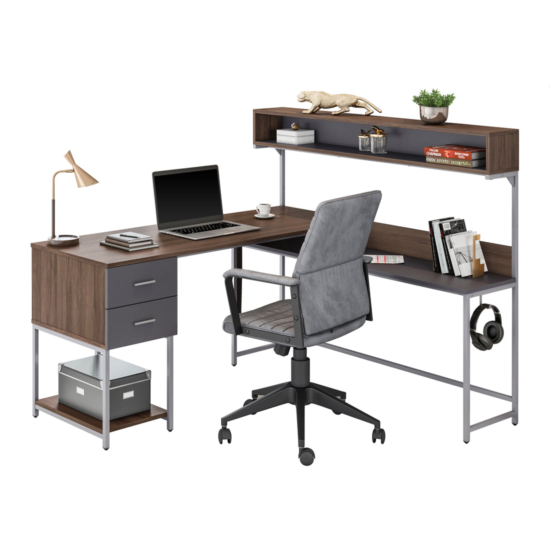 Name: Techni Mobili L-Shape Desk with Hutch and Storage, Walnut Description: Techni Mobili L-Shape Desk...