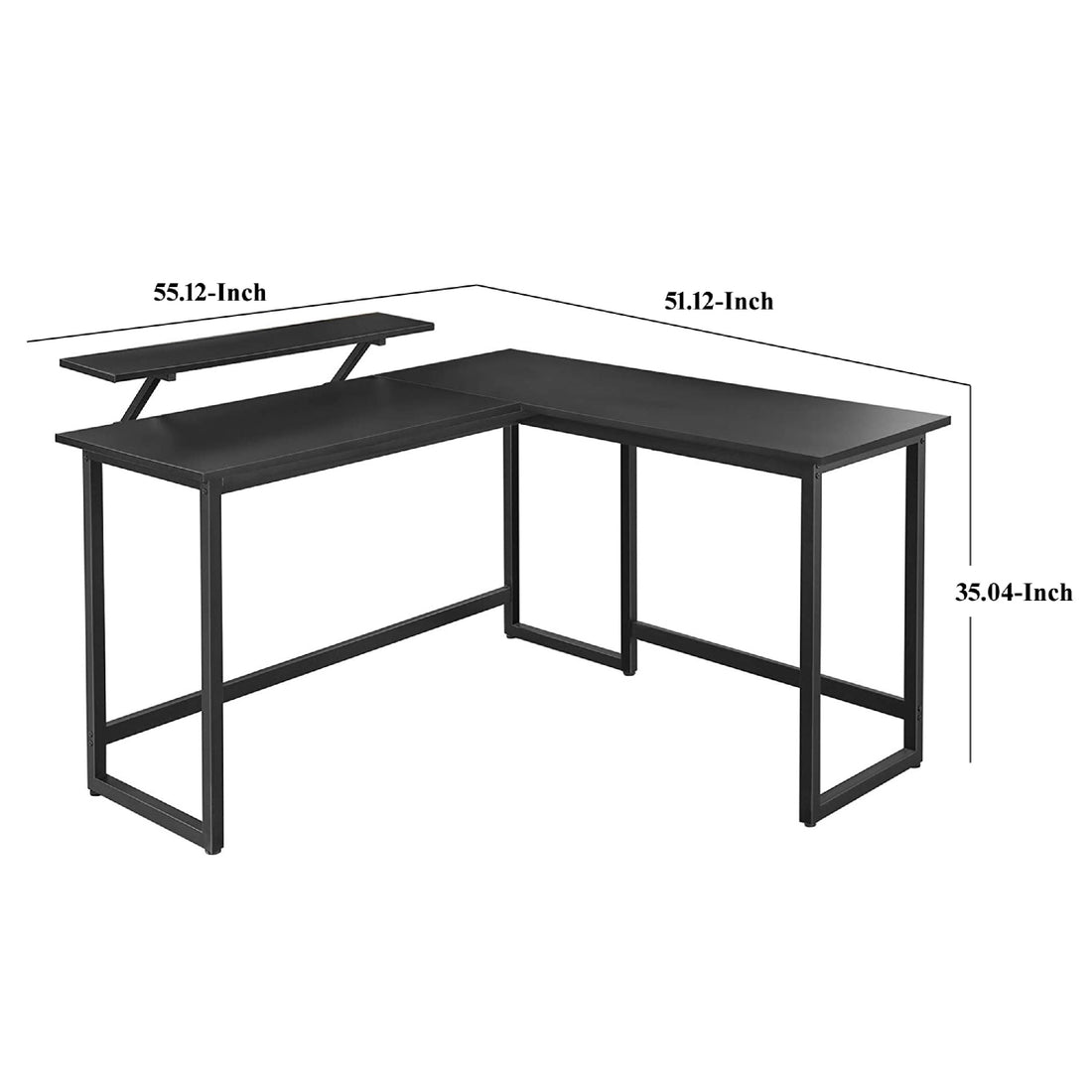Name: 55.1 Inch L Shape Wooden Desk with Sleek Monitor Top, Rustic Brown Characteristics: One...