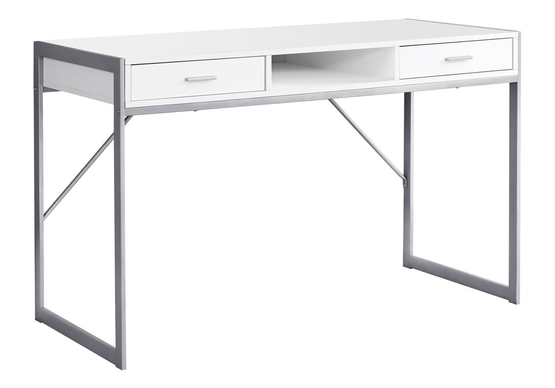 Computer Desk, Home Office, Laptop, Storage Drawers, 48"L, Work, White Laminate, Grey Metal, Contemporary, Modern White Mdf