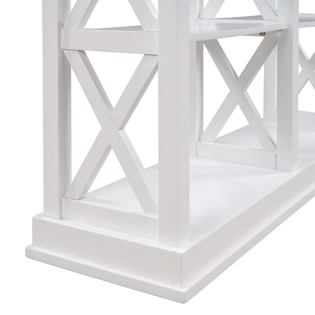 Console Table With 3 Tier Open Storage Spaces And "X" Legs, Narrow Sofa Entry Table For Living Room White White Solid Wood