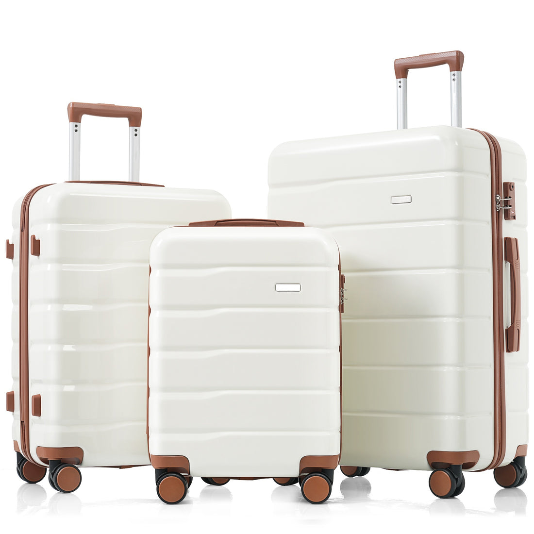 Premium Abs Travel Luggage Set3 Piece Tsa Lock Suitcase Group With 20, 24, And 28 Inch Sizes With 360 Spinner Wheels, White Beige Brown Abs