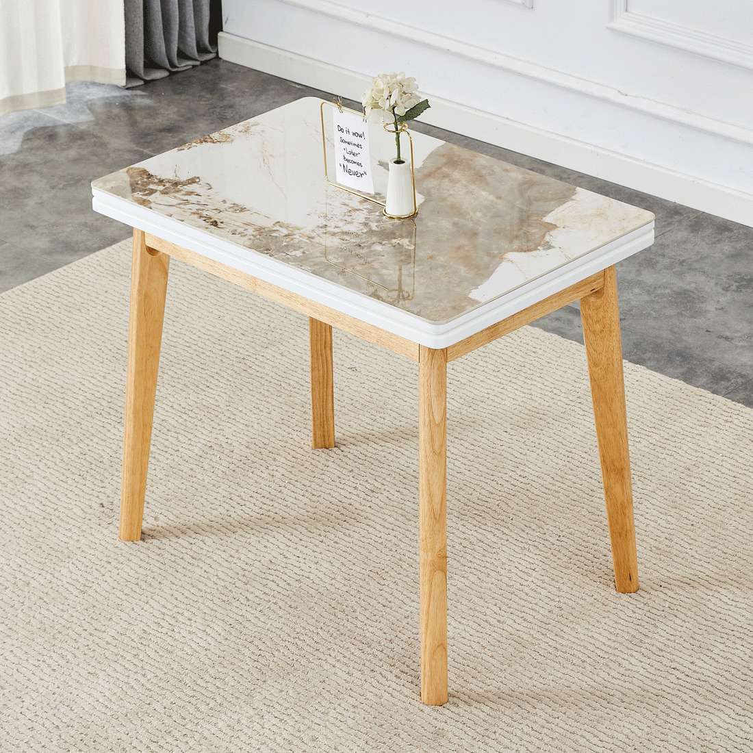 Imitation Marble White Sintered Stone Tabletop With Rubber Wooden Legs, Foldable Computer Desk, Foldable Office Desk, Suitable For Restaurants, Living Rooms, Terraces, Kitchens White Sintered Stone
