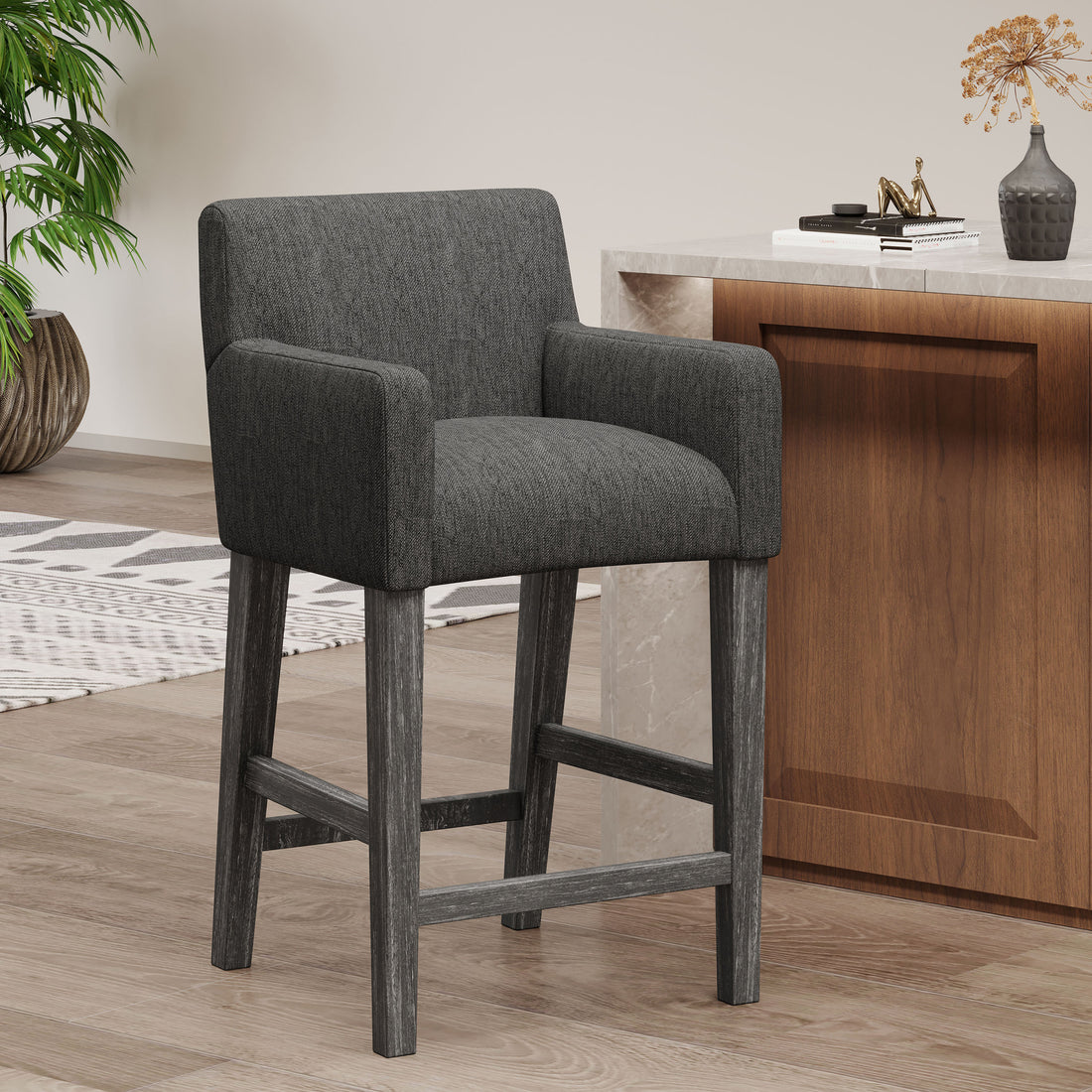 Upholstered 26 Inch Counter Stool Charcoal Gray Charcoal Fabric