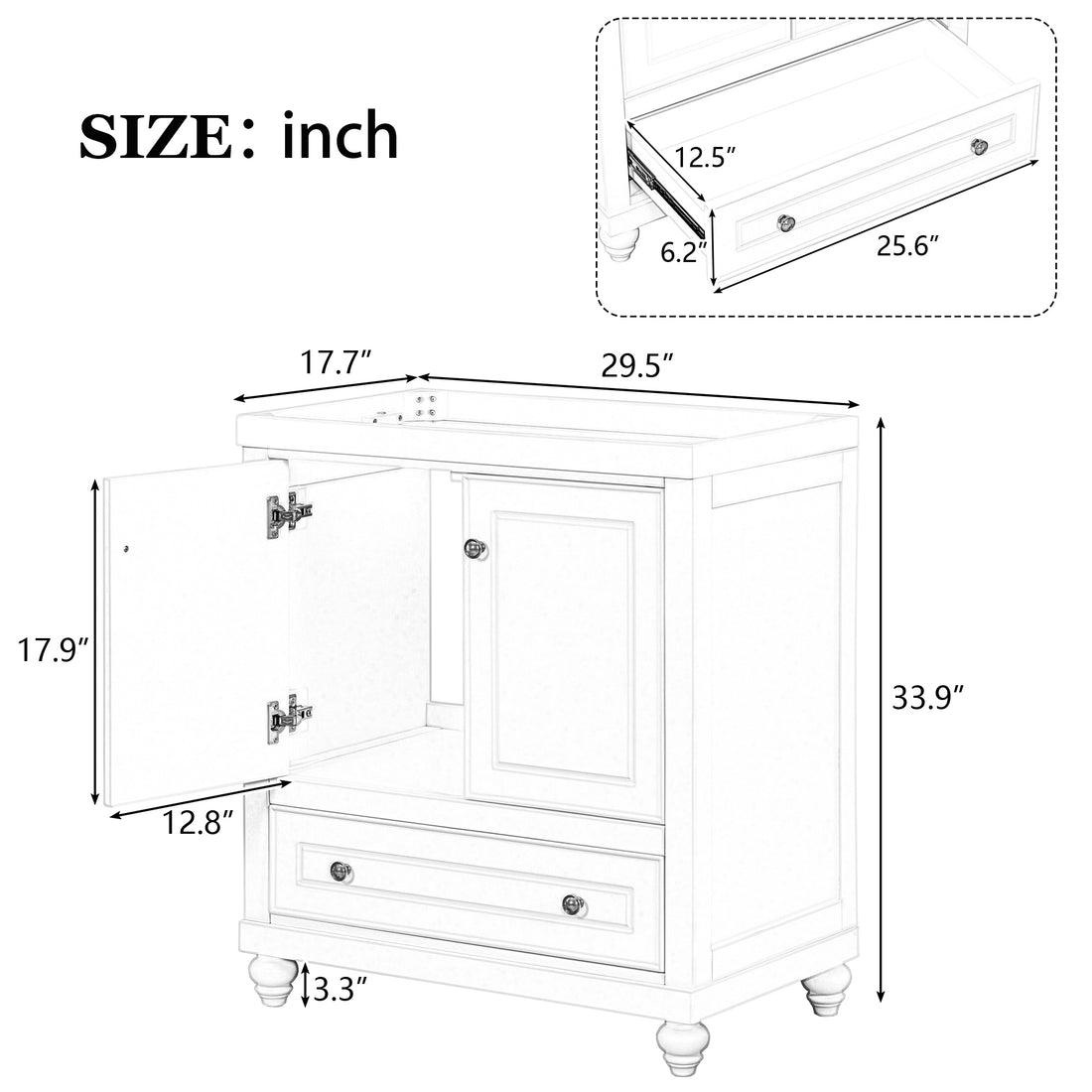 30" Bathroom Vanity Without Sink, Base Only, Cabinet With Doors And Drawer, Solid Frame And Mdf Board, White White Solid Wood Mdf