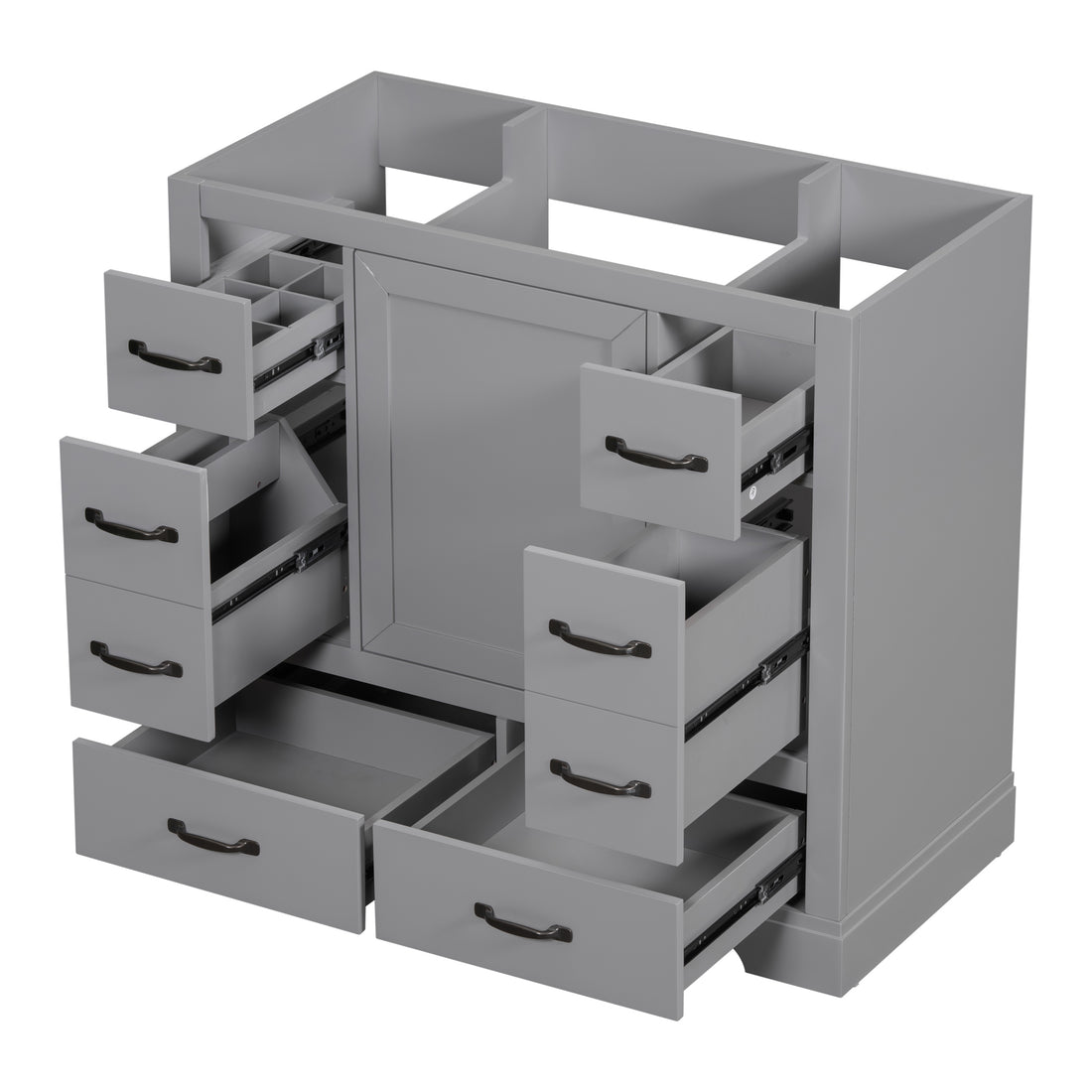 36" Bathroom Vanity Without Sink, Cabinet Base Only, Six Drawers, Multi Functional Drawer Divider, Adjustable Shelf, Grey Grey Solid Wood Mdf