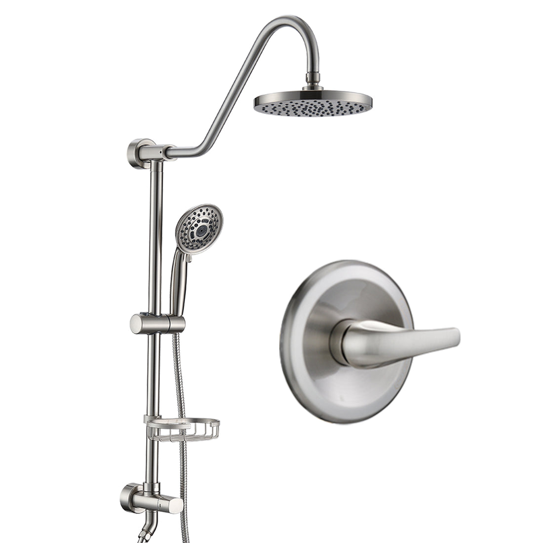 Shower Head With Handheld Shower System With 8" Rain Shower Head Rough In Valve Included Brushed Nickel Stainless Steel