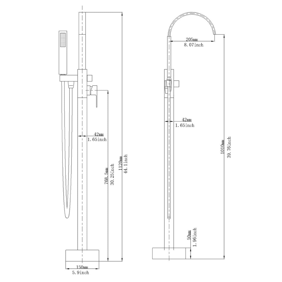 Name: Matte Black Waterfall Freestanding Tub Filler Floor Mount Bathtub Faucet with Handheld Sprayer Description:...