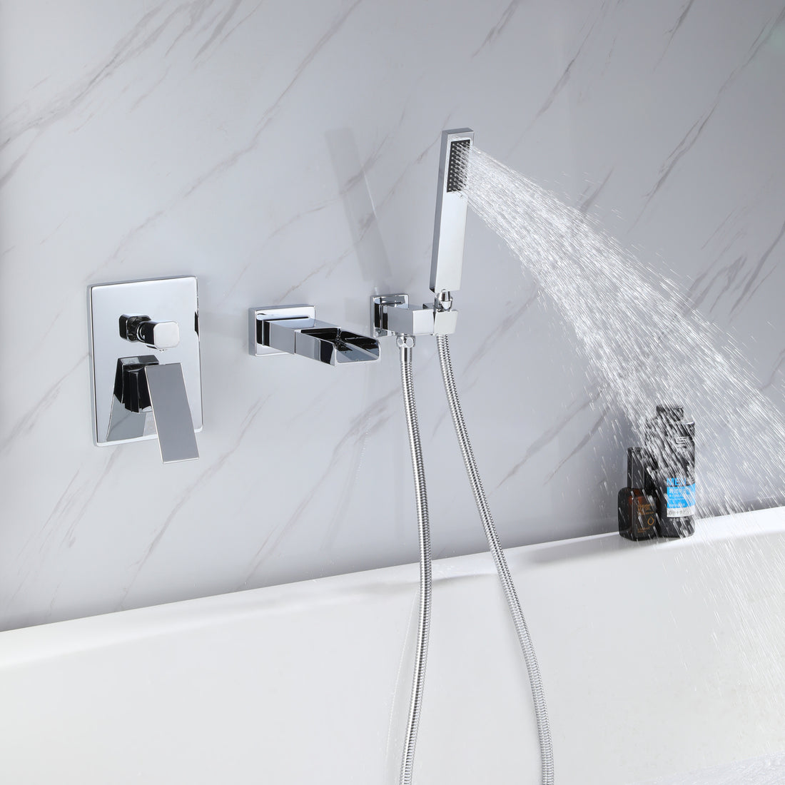 Name: TrustMade Pressure-Balance Waterfall Single Handle Wall Mount Tub Faucet with Hand Shower, Chrome -...