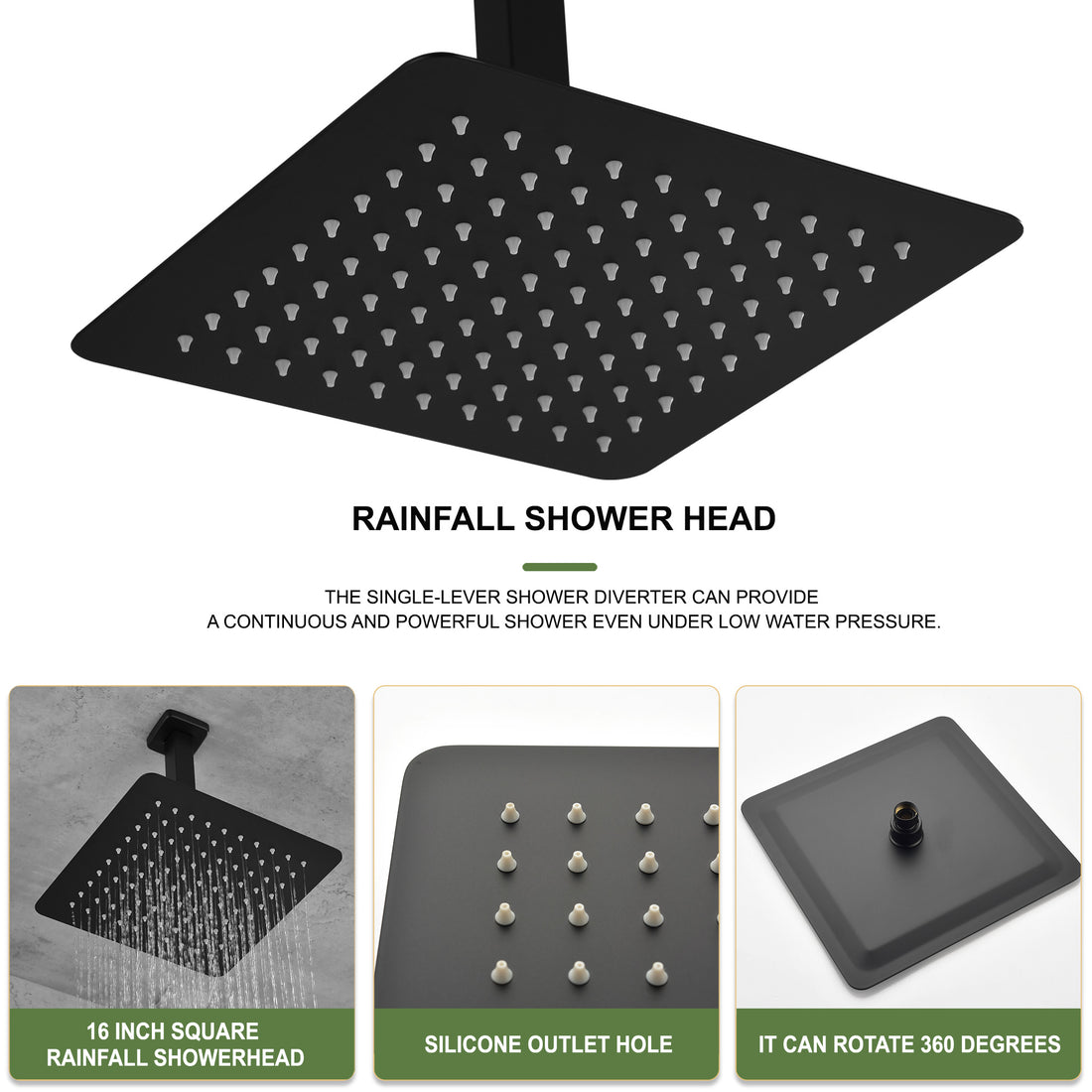 16 Inch Square Rain Shower Head Matte Black 304 Stainless Steel Showerhead Matte Black Bathroom Stainless Steel