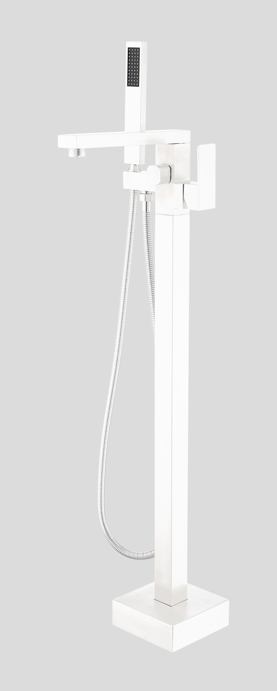 Freestanding Bathtub Faucet Tub Filler Brushed Nickel Floor Mount Bathroom Faucets Brass Single Handle With Hand Shower White Stainless Steel