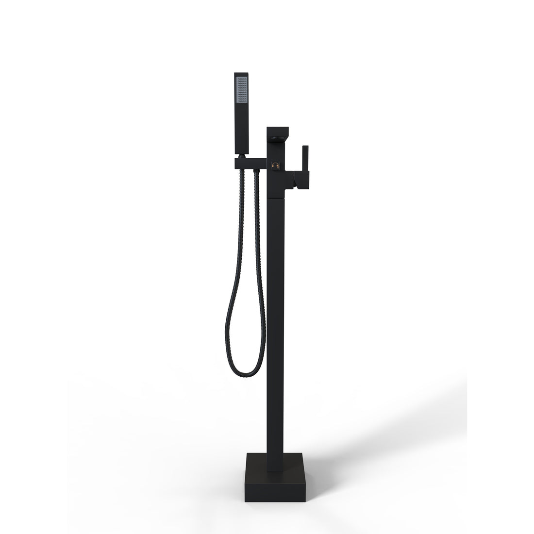 Name: Bathroom Freestanding Waterfall Tub filler Matte Black Floor Mount Faucet with Hand Shower Description:...