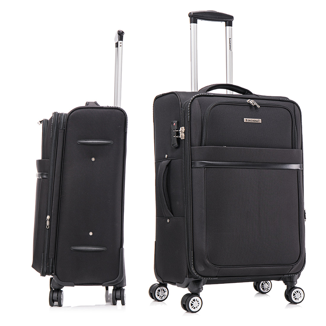 Name: 3-piece fabric soft luggage set with swivel wheels and password lock, black, 20/26/30 inches...