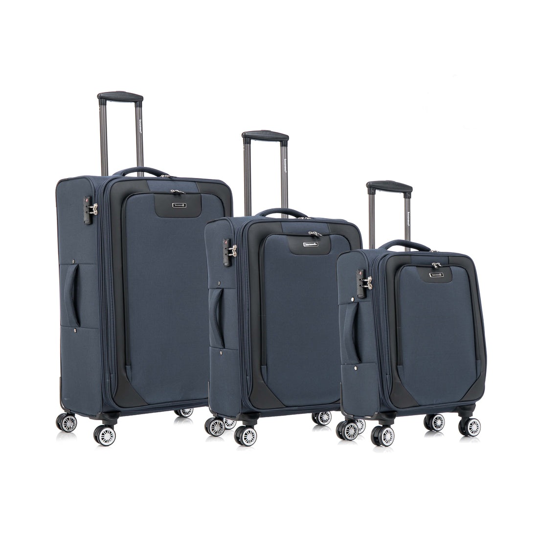 Name: 3-piece fabric soft luggage set with swivel wheels and password lock, dark blue, 20/26/30...