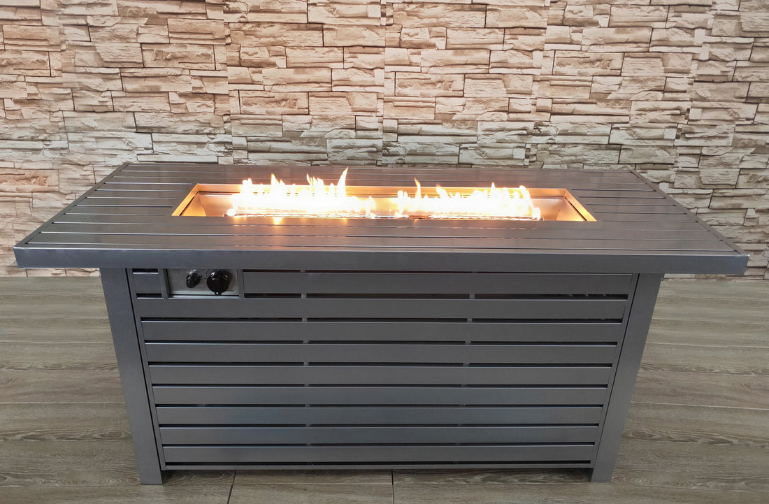 25 H X 52 W Propane Outdoor Fire Pit Table Gray Garden & Outdoor Modern Stone Aluminum