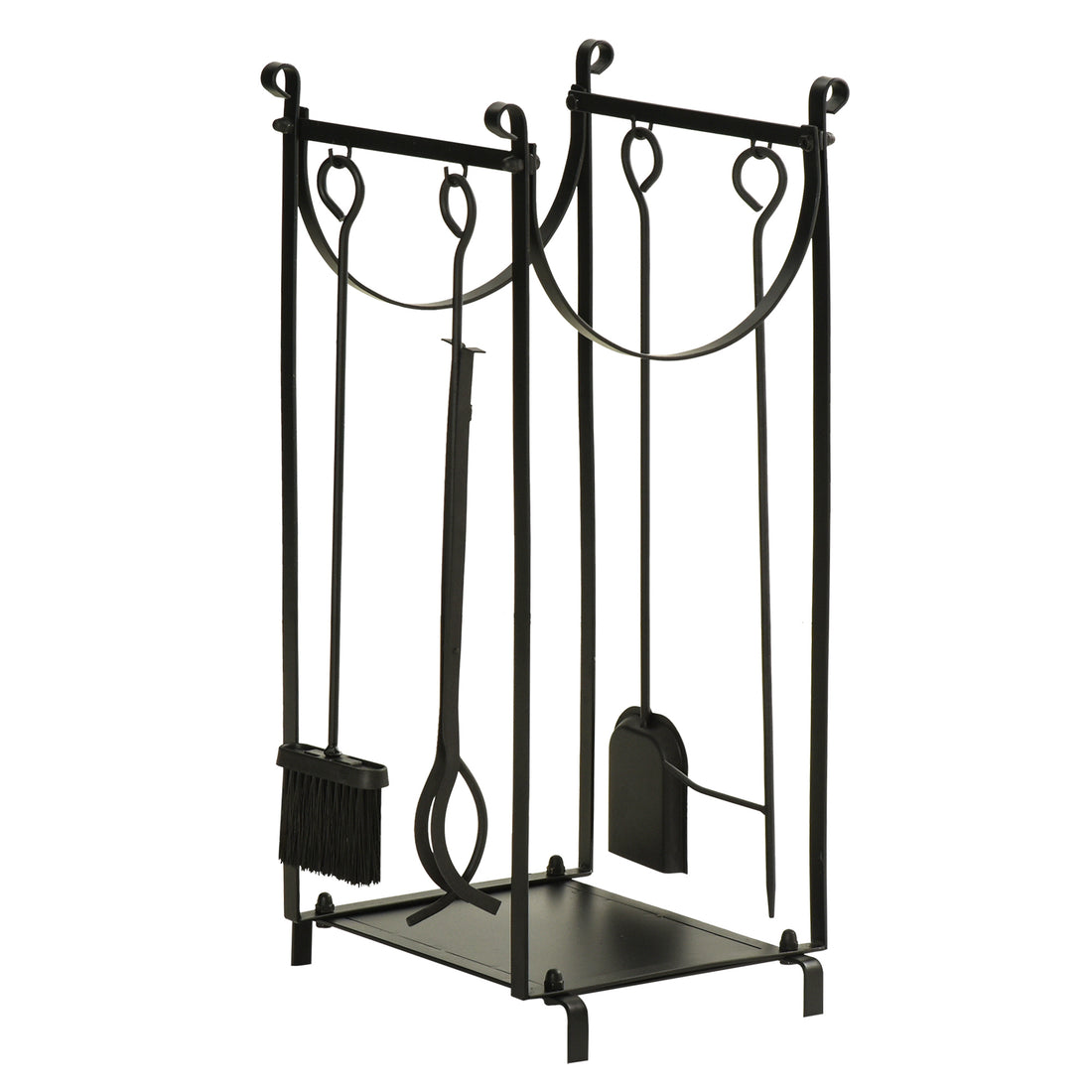 Firewood Rack With Fireplace Tools, Indoor Outdoor Firewood Holder, Flat Bottom With 2 Tiers For Fireplace, Wood Stove, Hearth Or Fire Pit, Black Black Steel