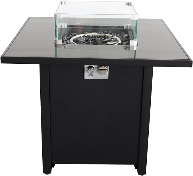 Name: 28in Propane Fire Pits Table, 50000 Btu Gas Square Outdoor Dinning Firepit Fireplace Dinning...
