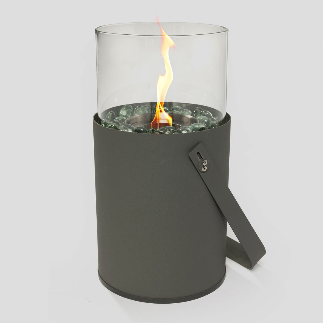 30" Powdercoated Metal Fire Pit With Smoked Glass Top Grey Steel