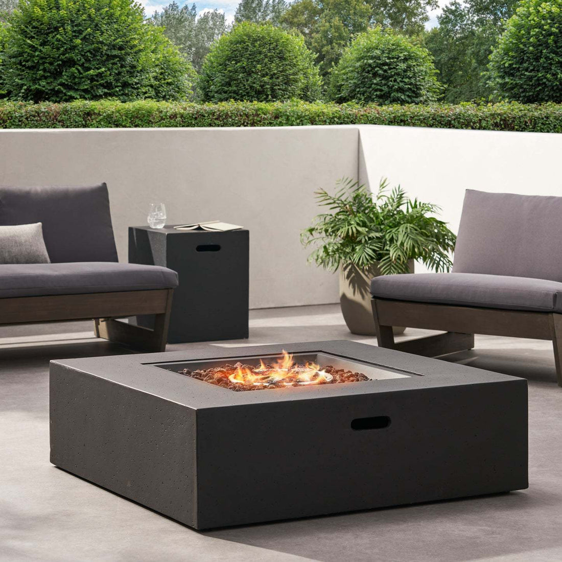 50000 Btu Outdoor Square Mgo Propane Fire Pit Table With Tank Holder Dark Gray Dark Gray Magnesium Oxide